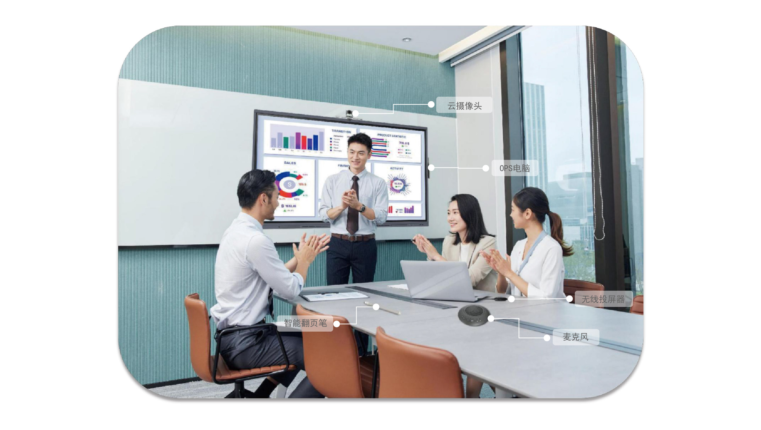 八機合一:集合投影儀、幕布、電子白板、電視、電腦、平板、機頂盒、音響八種設備功能于一體,化繁為簡,提高企業形象、辦公效率。