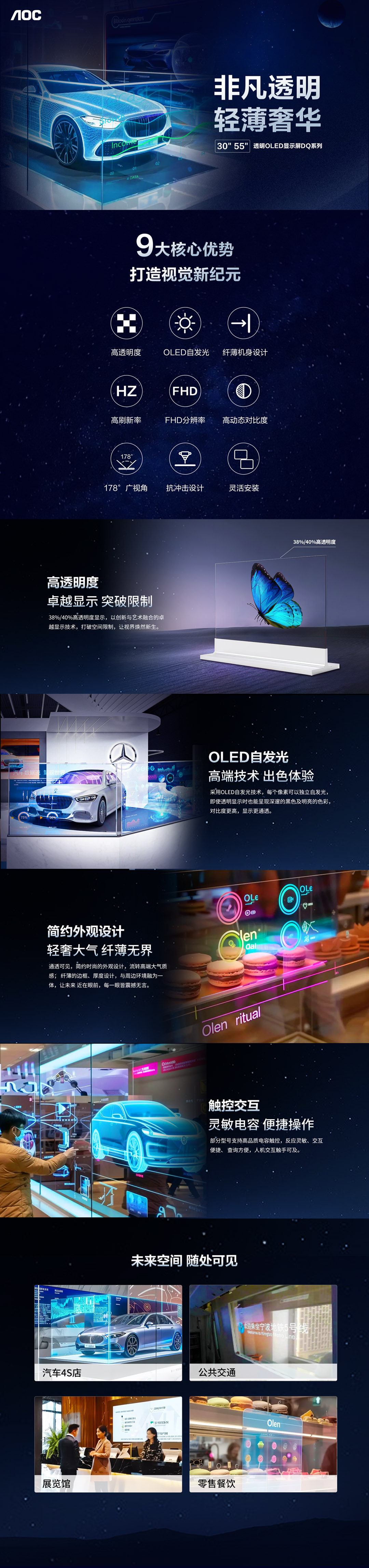 基于OLED自發(fā)光技術(shù)優(yōu)勢,透明度達(dá)到40%,非凡透明輕薄奢華