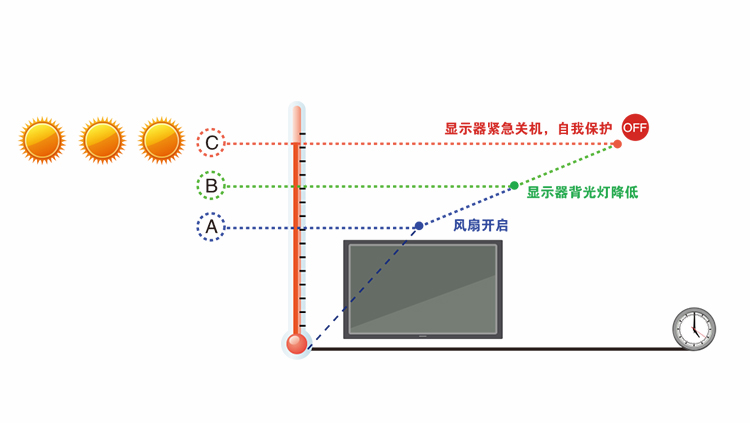 溫度管理、郵件報警、延遲開機等方面的安全設計,顯示器在苛刻工業環境仍能正常工作