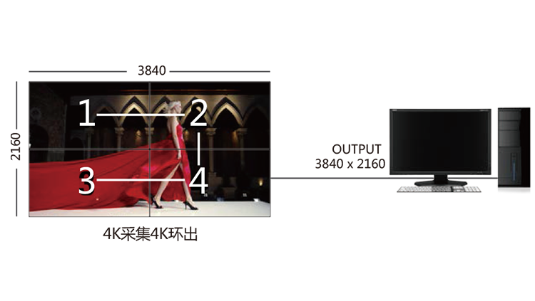 采用最新的 DisplayPort 1.2 和 HDMI1.4 標準數(shù)字 視頻接口,支持每路 4K 信號源采集。在 2x2 視頻墻上可以實現(xiàn) 4K 物 理分辨率點對點的顯示。
