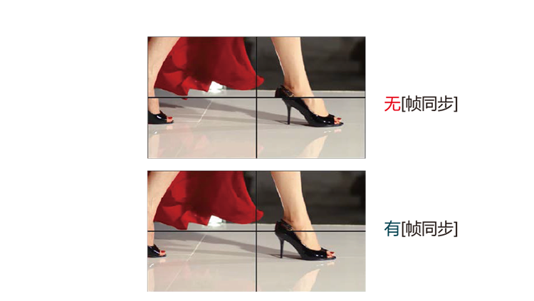 采用 NEC 獨有的【幀同步】功能保證了拼接墻畫面在高速運動時,拼 接單元之間畫面的同步性。